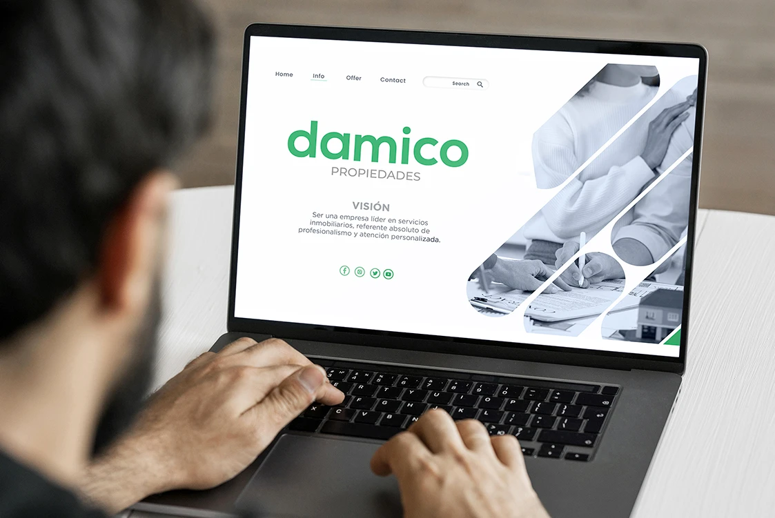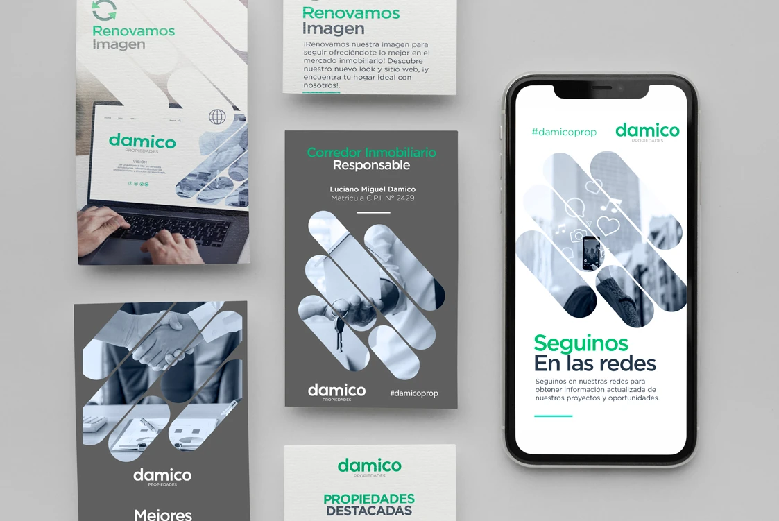 Damico Propiedades fue un proyecto integral de rediseño de marca, en el que me encargué de renovar la identidad visual de la empresa para darle un enfoque más moderno y profesional. Además, creé contenido estratégico para redes sociales, con el objetivo de aumentar la visibilidad y el engagement con la audiencia. Como parte de la campaña de marketing, diseñé un cartel exterior para destacar la venta de propiedades, garantizando que la comunicación fuera clara y atractiva. Finalmente, rediseñé el sitio web de la empresa, optimizando la experiencia del usuario y mejorando la funcionalidad para facilitar la navegación y la conversión de clientes potenciales.