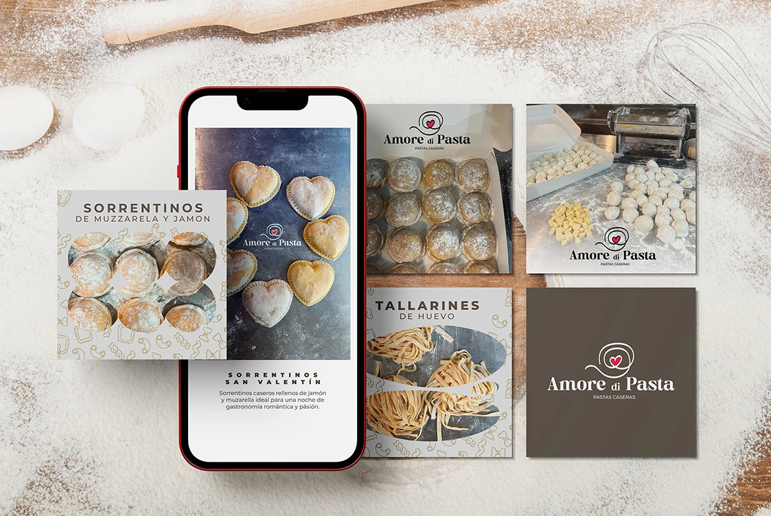 En Amores Di Pasta, llevé a cabo un proyecto de diseño integral, comenzando con la creación de la identidad de marca, que reflejara el estilo auténtico y moderno de la empresa. También diseñé el packaging para los productos, asegurándome de que cada pieza fuera visualmente atractiva y funcional, alineada con los valores de la marca. Para complementar la estrategia, desarrollé contenido visual para Instagram, con el objetivo de fortalecer la presencia en redes sociales y conectar de manera más efectiva con la audiencia, manteniendo una estética coherente y atractiva.