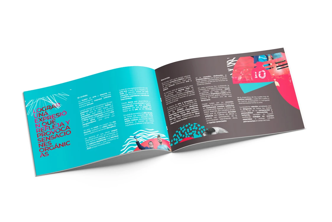En LandI Art, me encargué de diseñar la identidad visual de su producto estrella, Landi Arte, calcio e solidarietá, creando un concepto gráfico único que reflejara la esencia artística y moderna del producto. Además, colaboré en la creación de contenido visual tanto para redes sociales como para la web, asegurando que cada pieza mantuviera una estética coherente y atractiva, con el objetivo de fortalecer la presencia digital de la marca y conectar de manera efectiva con su público. Como parte del proyecto, también diseñé la comunicación visual para una subasta exclusiva de arte, destacando las obras del artista a través de un brochure informativo, una página web dedicada y contenido atractivo en redes sociales. Este trabajo permitió proyectar la personalidad creativa y distintiva de Landy Art a través de múltiples plataformas, generando expectativa y atrayendo a coleccionistas e interesados en la subasta.